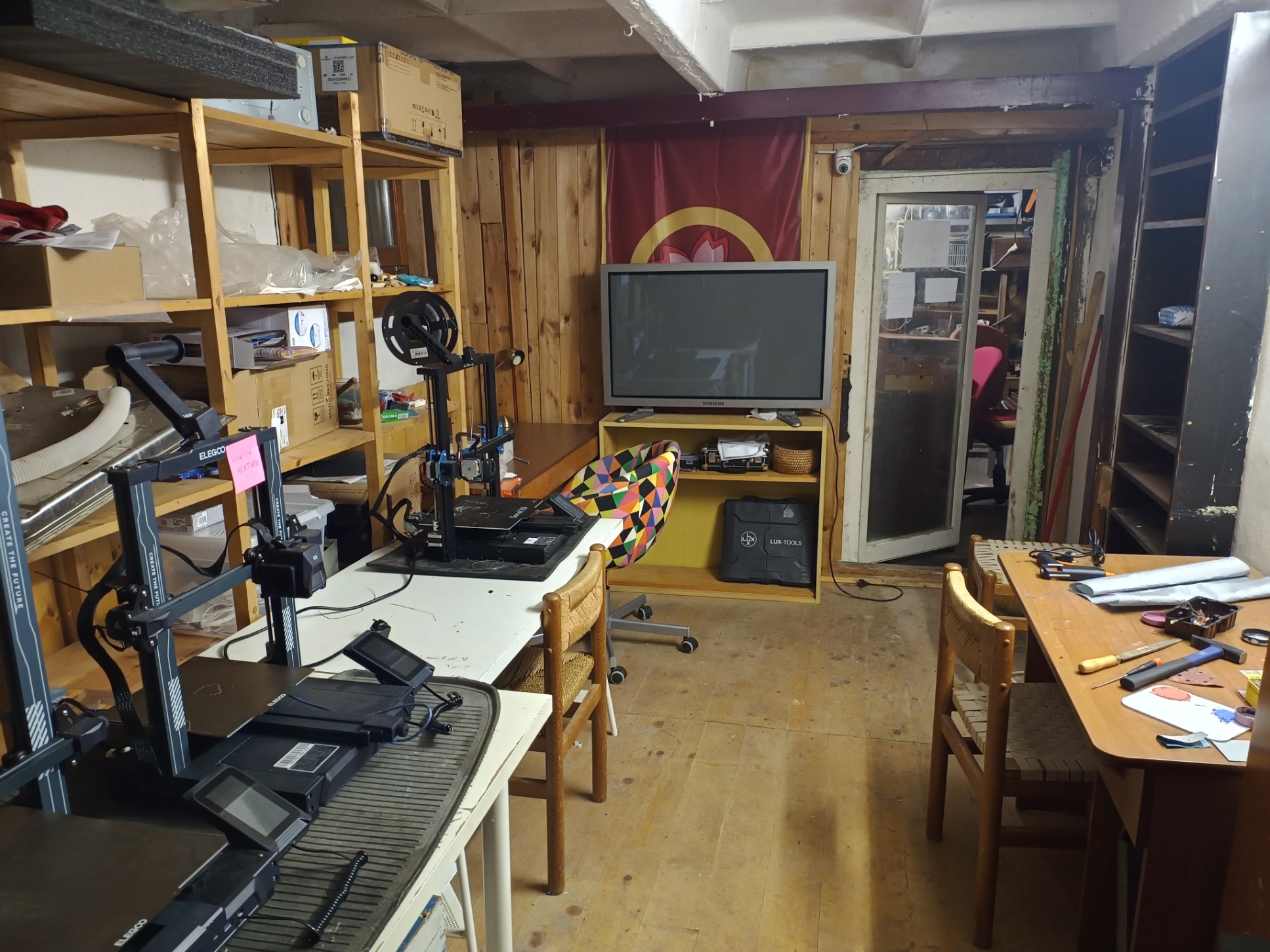 Vybavení a materiál pro členy spolku. Přijďte s nápadem, odejděte s hotovým projektem (nebo aspoň s historkou o tom, jak se to nepovedlo na první pokus).